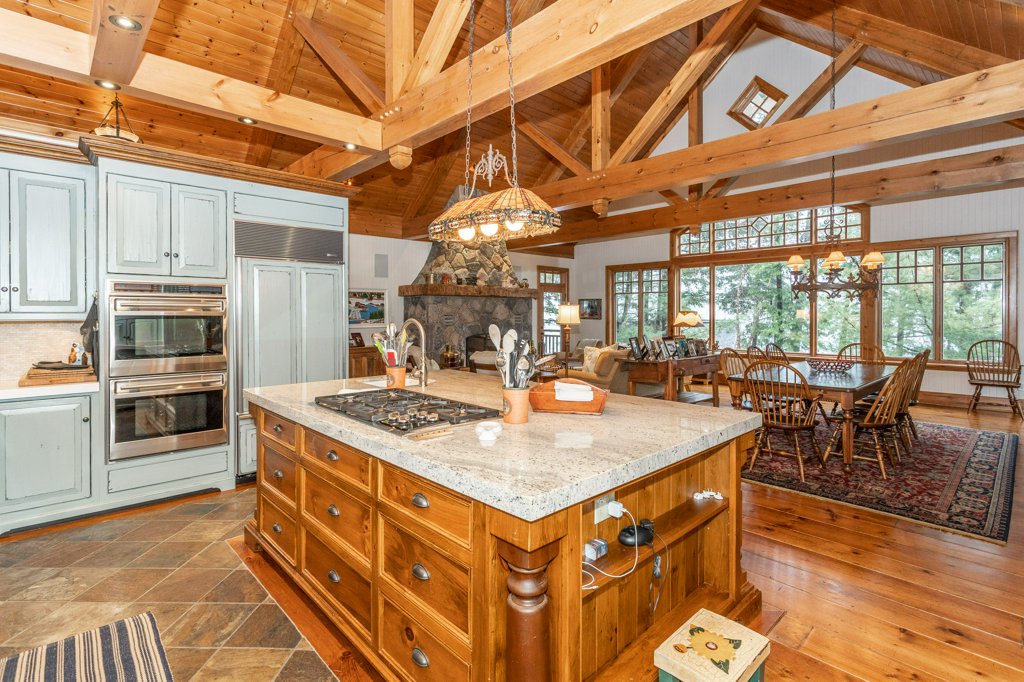 The lot -310 ft has W/NW exposure. Bask in sunshine. Finely crafted 5400 sq ft cottage with 6 spacious beds/5 baths, a professionally outfitted kitchen with Subzero/Wolf/Miele/Stainless appliances, majestic granite wood burning fireplace, main floor pantry; laundry area - an organizer's dream! Separate family room opens to lakeside Muskoka room and entertaining deck. Spacious main floor master suite with 5 piece ensuite, walk-in closet and walkout to private deck. Fully finished lower with banks of windows and a ginormous family/games room. 3 slip lined 2-storey boathouse with oversized sundeck and living suite plus 2 more bedrooms! This gorgeous property sleeps up to 18!