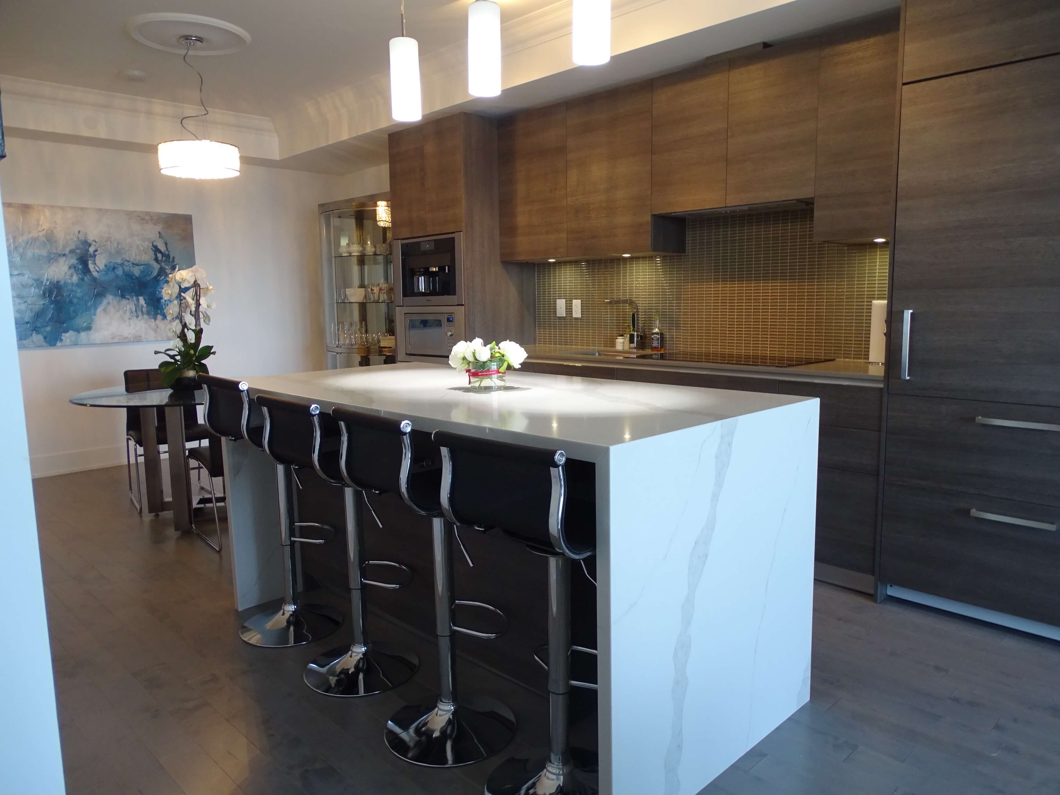 Come to the “Top” Cube of The Exhibit with only 6 suites per floor. Gorgeous sunsets and stellar south city/lake views from your 147 sqft. balcony. Functional open concept design with 9’ ceilings. This is one of the best suites in the building with tasteful upgrades including a waterfall island with seating for 4, crown mouldings, hardwood floors and new appliances to highlight a sleek kitchen with European cabinetry. The dining area can accommodate a table for 6 and the den has double doors for privacy. You’ll love living here!